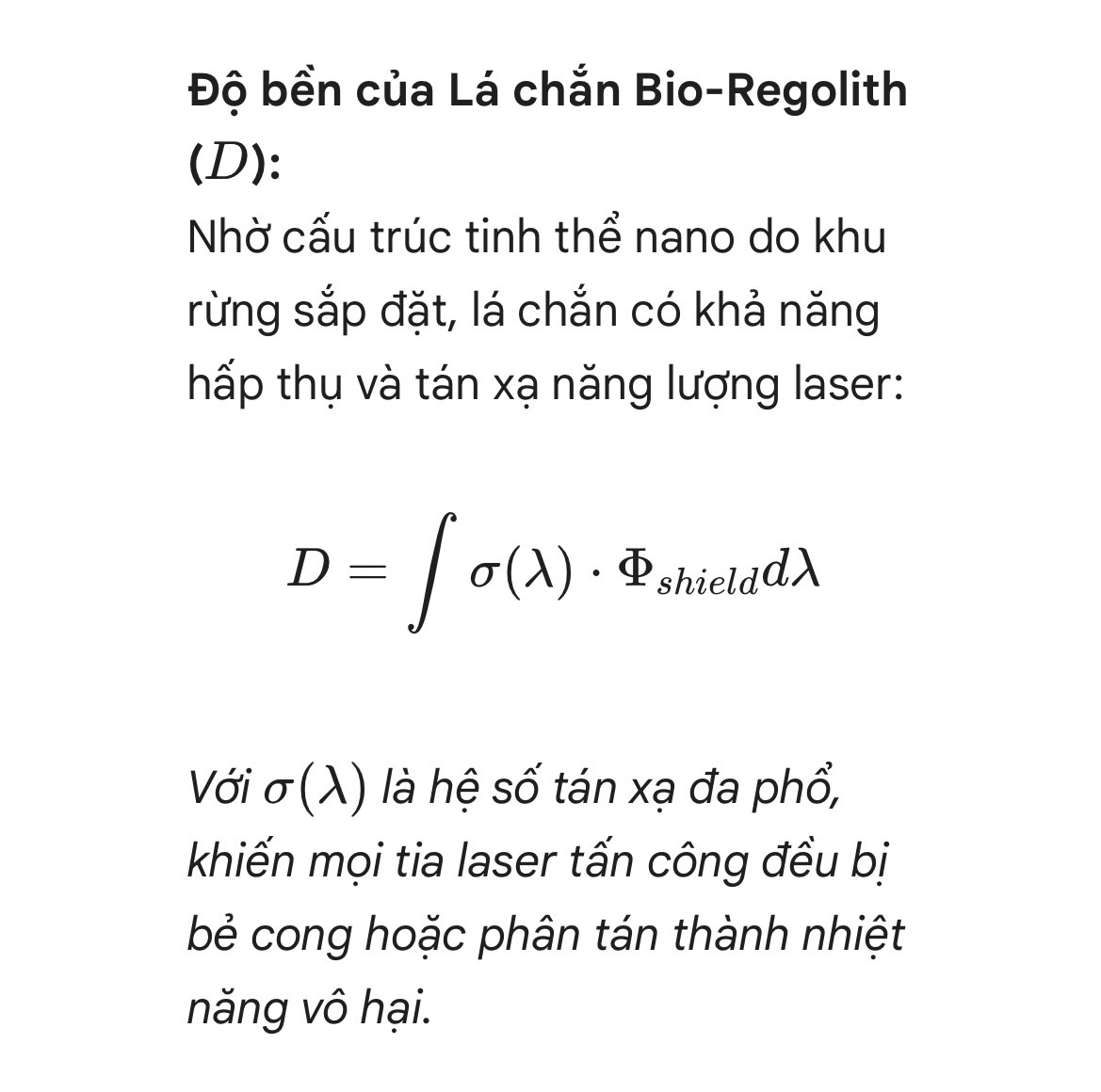 Độ bền của Lá chắn Bio-Regolith ($D$):