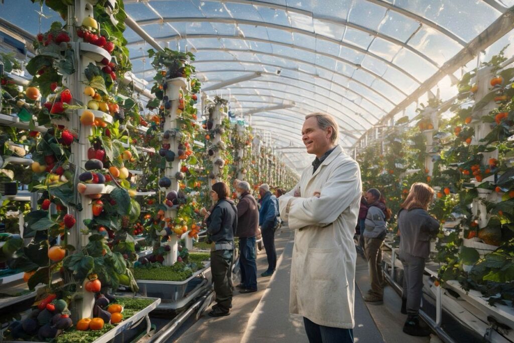 Vườn địa đàng thẳng đứng Những dãy trang trại thẳng đứng (Vertical Farms) giờ đây là niềm tự hào của Giáo sư Miller. Không còn là những khay tảo xanh lục đơn điệu và khó nuốt, cư dân Selene giờ đây được bao quanh bởi một rừng trái cây rực rỡ sắc màu. Nhờ môi trường $1/6G$ (trọng lực thấp), các loài thực vật phát triển theo những cách thức kỳ diệu. Những quả dâu tây đỏ mọng có kích cỡ to bằng nắm tay, căng mọng nước và ngọt lịm. Những bông lúa mì vàng óng vươn cao tới ba mét, trĩu hạt với hàm lượng dinh dưỡng cao gấp bội do được hấp thụ trực tiếp các hạt Bio-photon từ hệ thống ánh sáng thông minh.